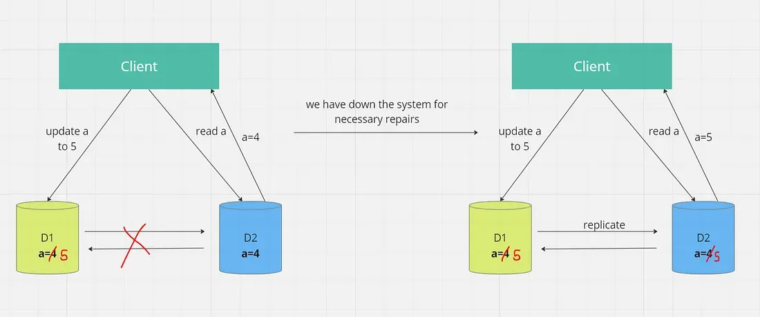 در صورت قطعی ارتباط، سامانه همچنان پاسخ میدهد (در دسترس میماند)، اما بهدلیل عدم همگامسازی، یکنواختی دادهها از بین میرود.